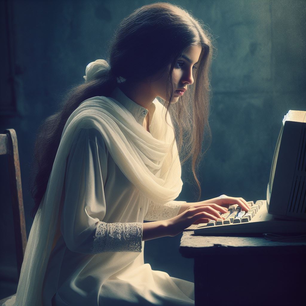 لباس بلندش را مرتب میکند و بر لبه کوچک صندلی چوبی مینشیند، کمر باریکش را صاف میکند و شروع میکند به لمس های ظریف بر تن سرد و بی روح صفحه کلید ...